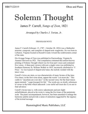 {"id":8060936814781,"title":"SOLEMN THOUGHT","handle":"solemn-thought-oboe-solo","description":"\u003ciframe width=\"100%\" height=\"166\" scrolling=\"no\" frameborder=\"no\" allow=\"autoplay\" src=\"https:\/\/w.soundcloud.com\/player\/?url=https%3A\/\/api.soundcloud.com\/tracks\/831613468\u0026amp;color=%23ff5500\u0026amp;auto_play=false\u0026amp;hide_related=true\u0026amp;show_comments=false\u0026amp;show_user=true\u0026amp;show_reposts=false\u0026amp;show_teaser=false\"\u003e\u003c\/iframe\u003e\n\u003cdiv style=\"font-size: 10px; color: #cccccc; line-break: anywhere; word-break: normal; overflow: hidden; white-space: nowrap; text-overflow: ellipsis; font-family: Interstate,Lucida Grande,Lucida Sans Unicode,Lucida Sans,Garuda,Verdana,Tahoma,sans-serif; font-weight: 100;\"\u003e\n\u003ca href=\"https:\/\/soundcloud.com\/user-681235935\" title=\"Hummingbird Music Publishers\" target=\"_blank\" style=\"color: #cccccc; text-decoration: none;\" rel=\"noopener noreferrer\"\u003eHummingbird Music Publishers\u003c\/a\u003e · \u003ca href=\"https:\/\/soundcloud.com\/user-681235935\/solemn-thought-2\" title=\"Solemn Thought\" target=\"_blank\" style=\"color: #cccccc; text-decoration: none;\" rel=\"noopener noreferrer\"\u003eSolemn Thought\u003c\/a\u003e\n\u003c\/div\u003e\n\u003cp class=\"productBTN\"\u003e\u003ca class=\"btn\" href=\"https:\/\/www.youtube.com\/embed\/kOnFDuzHR7E?rel=0\" target=\"_blank\" rel=\"noopener noreferrer\"\u003eWatch Score Video\u003c\/a\u003e\u003ca class=\"btn\" href=\"https:\/\/cdn.shopify.com\/s\/files\/1\/0322\/6871\/4117\/files\/Solemn_Thought_Piano_Score_with_Oboe_with_Watermark.pdf?v=1590871413\" target=\"_blank\" rel=\"noopener noreferrer\"\u003eView Score\u003c\/a\u003e\u003c\/p\u003e\n\u003cp\u003e\u003cem\u003eSolemn Thought\u003c\/em\u003e is a nineteenth-century American tune using only the tones of the pentatonic scale. This practice is frequently observed in tunes of the shaped-note tradition. The solo instrument performs the tune, as it was composed, with some octave adjustments and just slight embellishment. The piano accompaniment, however, has been amended to enlarge the harmonic palette and provide a sense of animation suggested by strongly worded lyrics, when sung.\u003c\/p\u003e","published_at":"2025-08-17T07:39:20-04:00","created_at":"2025-08-17T07:34:06-04:00","vendor":"Hummingbird Music Publishers","type":"Music","tags":["Category_Hymn Arrangements","Category_Sacred Selections","Difficulty_Intermediate","Full","Instrument_Oboe\/English Horn","Instrumental","Solo"],"price":795,"price_min":795,"price_max":795,"available":true,"price_varies":false,"compare_at_price":null,"compare_at_price_min":0,"compare_at_price_max":0,"compare_at_price_varies":false,"variants":[{"id":45311901827261,"title":"Print","option1":"Print","option2":null,"option3":null,"sku":"HB07122019","requires_shipping":true,"taxable":true,"featured_image":null,"available":true,"name":"SOLEMN THOUGHT - Print","public_title":"Print","options":["Print"],"price":795,"weight":454,"compare_at_price":null,"inventory_management":"shopify","barcode":"","requires_selling_plan":false,"selling_plan_allocations":[]},{"id":45311901860029,"title":"Digital Download","option1":"Digital Download","option2":null,"option3":null,"sku":"HB07122019DD","requires_shipping":false,"taxable":true,"featured_image":null,"available":true,"name":"SOLEMN THOUGHT - Digital Download","public_title":"Digital Download","options":["Digital Download"],"price":795,"weight":454,"compare_at_price":null,"inventory_management":"shopify","barcode":"","requires_selling_plan":false,"selling_plan_allocations":[]}],"images":["\/\/hummingbirdmusic.com\/cdn\/shop\/files\/SolemnThought_Oboe_DustCover.jpg?v=1755430491","\/\/hummingbirdmusic.com\/cdn\/shop\/files\/SolemnThoughtOboeProgramNote.jpg?v=1755430491"],"featured_image":"\/\/hummingbirdmusic.com\/cdn\/shop\/files\/SolemnThought_Oboe_DustCover.jpg?v=1755430491","options":["PURCHASE"],"media":[{"alt":null,"id":29386587898045,"position":1,"preview_image":{"aspect_ratio":0.773,"height":1650,"width":1275,"src":"\/\/hummingbirdmusic.com\/cdn\/shop\/files\/SolemnThought_Oboe_DustCover.jpg?v=1755430491"},"aspect_ratio":0.773,"height":1650,"media_type":"image","src":"\/\/hummingbirdmusic.com\/cdn\/shop\/files\/SolemnThought_Oboe_DustCover.jpg?v=1755430491","width":1275},{"alt":null,"id":29386587930813,"position":2,"preview_image":{"aspect_ratio":0.773,"height":2200,"width":1700,"src":"\/\/hummingbirdmusic.com\/cdn\/shop\/files\/SolemnThoughtOboeProgramNote.jpg?v=1755430491"},"aspect_ratio":0.773,"height":2200,"media_type":"image","src":"\/\/hummingbirdmusic.com\/cdn\/shop\/files\/SolemnThoughtOboeProgramNote.jpg?v=1755430491","width":1700}],"requires_selling_plan":false,"selling_plan_groups":[],"content":"\u003ciframe width=\"100%\" height=\"166\" scrolling=\"no\" frameborder=\"no\" allow=\"autoplay\" src=\"https:\/\/w.soundcloud.com\/player\/?url=https%3A\/\/api.soundcloud.com\/tracks\/831613468\u0026amp;color=%23ff5500\u0026amp;auto_play=false\u0026amp;hide_related=true\u0026amp;show_comments=false\u0026amp;show_user=true\u0026amp;show_reposts=false\u0026amp;show_teaser=false\"\u003e\u003c\/iframe\u003e\n\u003cdiv style=\"font-size: 10px; color: #cccccc; line-break: anywhere; word-break: normal; overflow: hidden; white-space: nowrap; text-overflow: ellipsis; font-family: Interstate,Lucida Grande,Lucida Sans Unicode,Lucida Sans,Garuda,Verdana,Tahoma,sans-serif; font-weight: 100;\"\u003e\n\u003ca href=\"https:\/\/soundcloud.com\/user-681235935\" title=\"Hummingbird Music Publishers\" target=\"_blank\" style=\"color: #cccccc; text-decoration: none;\" rel=\"noopener noreferrer\"\u003eHummingbird Music Publishers\u003c\/a\u003e · \u003ca href=\"https:\/\/soundcloud.com\/user-681235935\/solemn-thought-2\" title=\"Solemn Thought\" target=\"_blank\" style=\"color: #cccccc; text-decoration: none;\" rel=\"noopener noreferrer\"\u003eSolemn Thought\u003c\/a\u003e\n\u003c\/div\u003e\n\u003cp 