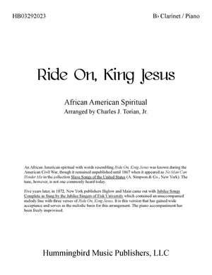 {"id":8060821700797,"title":"RIDE ON, KING JESUS","handle":"ride-on-king-jesus-1","description":"\u003cp\u003e\u003ciframe width=\"100%\" height=\"166\" src=\"https:\/\/w.soundcloud.com\/player\/?url=https%3A\/\/api.soundcloud.com\/tracks\/1514059183\u0026amp;color=%23ff5500\u0026amp;auto_play=false\u0026amp;hide_related=true\u0026amp;show_comments=false\u0026amp;show_user=true\u0026amp;show_reposts=false\u0026amp;show_teaser=false\"\u003e\u003c\/iframe\u003e\u003c\/p\u003e\n\u003cdiv style=\"font-size: 10px; color: #cccccc; line-break: anywhere; word-break: normal; overflow: hidden; white-space: nowrap; text-overflow: ellipsis; font-family: Interstate,Lucida Grande,Lucida Sans Unicode,Lucida Sans,Garuda,Verdana,Tahoma,sans-serif; font-weight: 100;\"\u003e\n\u003ca href=\"https:\/\/soundcloud.com\/user-681235935\" title=\"Hummingbird Music Publishers\" style=\"color: #cccccc; text-decoration: none;\" target=\"_blank\"\u003eHummingbird Music Publishers\u003c\/a\u003e · \u003ca href=\"https:\/\/soundcloud.com\/user-681235935\/ride-on-king-jesus-for-clarinet-solo-and-piano\" title=\"Ride On, King Jesus for Clarinet Solo and Piano\" style=\"color: #cccccc; text-decoration: none;\" target=\"_blank\"\u003eRide On, King Jesus for Clarinet Solo and Piano\u003c\/a\u003e\n\u003c\/div\u003e\n\u003cp class=\"productBTN\"\u003e\u003ca href=\"https:\/\/www.youtube.com\/embed\/IyFpcqS4FVY?rel=0\" class=\"btn\" target=\"_blank\"\u003eWatch Score Video\u003c\/a\u003e\u003ca href=\"https:\/\/cdn.shopify.com\/s\/files\/1\/0322\/6871\/4117\/files\/Ride_On_King_Jesus_Clarinet_Score_with_Watermark.pdf?v=1684086297\" class=\"btn\" target=\"_blank\"\u003eView Score\u003c\/a\u003e\u003c\/p\u003e\n\u003cp\u003eRide On, King Jesus is a sacred African American spiritual dating from sometime before, or during, the American Civil War. The source material was derived from an 1872 publication where only the melody line was present. Both the solo part and piano accompaniment have been improvised from that score. Of only moderate difficulty, the work has a duration spanning roughly 2:45. Available versions include:\u003c\/p\u003e\n\u003cp\u003eHB03282023 for English Horn and Piano\u003c\/p\u003e\n\u003cp\u003eHB03292023 for B-flat Clarinet and Piano\u003c\/p\u003e\n\u003cp\u003e\u003cspan style=\"mso-ascii-font-family: Calibri; mso-hansi-font-family: Calibri; mso-bidi-font-family: Calibri;\"\u003eHB03302023 for E-flat Alto Saxophone and Piano\u003c\/span\u003e\u003c\/p\u003e","published_at":"2025-08-16T13:36:33-04:00","created_at":"2025-08-16T13:32:47-04:00","vendor":"Hummingbird Music Publishers","type":"Music","tags":["Category_Folk\/Spirituals","Category_Hymn Arrangements","Category_Sacred Selections","Category_Seasonal","Difficulty_Intermediate","Full","Instrument_Clarinet","Instrumental","Seasonal_Easter","Solo"],"price":1200,"price_min":1200,"price_max":1200,"available":true,"price_varies":false,"compare_at_price":null,"compare_at_price_min":0,"compare_at_price_max":0,"compare_at_price_varies":false,"variants":[{"id":45311159533757,"title":"Print","option1":"Print","option2":null,"option3":null,"sku":"HB03292023","requires_shipping":true,"taxable":true,"featured_image":null,"available":true,"name":"RIDE ON, KING JESUS - Print","public_title":"Print","options":["Print"],"price":1200,"weight":454,"compare_at_price":null,"inventory_management":"shopify","barcode":"","requires_selling_plan":false,"selling_plan_allocations":[]},{"id":45311159566525,"title":"Digital Download","option1":"Digital Download","option2":null,"option3":null,"sku":"HB03292023DD","requires_shipping":false,"taxable":true,"featured_image":null,"available":true,"name":"RIDE ON, KING JESUS - Digital Download","public_title":"Digital Download","options":["Digital Download"],"price":1200,"weight":454,"compare_at_price":null,"inventory_management":"shopify","barcode":"","requires_selling_plan":false,"selling_plan_allocations":[]}],"images":["\/\/hummingbirdmusic.com\/cdn\/shop\/files\/RideOn_KingJesus_Clarinet_DustCover_e9043895-33d9-4aa6-abd5-87042178ab81.jpg?v=1755365612","\/\/hummingbirdmusic.com\/cdn\/shop\/files\/RideOn_KingJesus_Clarinet_ScoreCoverPage_90d44152-44da-4f22-8bbf-08fa890344de.jpg?v=1755365612"],"featured_image":"\/\/hummingbirdmusic.com\/cdn\/shop\/files\/RideOn_KingJesus_Clarinet_DustCover_e9043895-33d9-4aa6-abd5-87042178ab81.jpg?v=1755365612","options":["PURCHASE"],"media":[{"alt":null,"id":29383048429757,"position":1,"preview_image":{"aspect_ratio":0.773,"height":1650,"width":1275,"src":"\/\/hummingbirdmusic.com\/cdn\/shop\/files\/RideOn_KingJesus_Clarinet_DustCover_e9043895-33d9-4aa6-abd5-87042178ab81.jpg?v=1755365612"},"aspect_ratio":0.773,"height":1650,"media_type":"image","src":"\/\/hummingbirdmusic.com\/cdn\/shop\/files\/RideOn_KingJesus_Clarinet_DustCover_e9043895-33d9-4aa6-abd5-87042178ab81.jpg?v=1755365612","width":1275},{"alt":null,"id":29383048462525,"position":2,"preview_image":{"aspect_ratio":0.773,"height":2200,"width":1700,"src":"\/\/hummingbirdmusic.com\/cdn\/shop\/files\/RideOn_KingJesus_Clarinet_ScoreCoverPage_90d44152-44da-4f22-8bbf-08fa890344de.jpg?v=1755365612"},"aspect_ratio":0.773,"height":2200,"media_type":"image","src":"\/\/hummingbirdmusic.com\/cdn\/shop\/files\/RideOn_KingJesus_Clarinet_ScoreCoverPage_90d44152-44da-4f22-8bbf-08fa890344de.jpg?v=1755365612","width":1700}],"requires_selling_plan":false,"selling_plan_groups":[],"content":"\u003cp\u003e\u003ciframe width=\"100%\" height=\"166\" src=\"https:\/\/w.soundcloud.com\/player\/?url=https%3A\/\/api.soundcloud.com\/tracks\/1514059183\u0026amp;color=%23ff5500\u0026amp;auto_play=false\u0026amp;hide_related=true\u0026amp;show_comments=false\u0026amp;show_user=true\u0026amp;show_reposts=false\u0026amp;show_teaser=false\"\u003e\u003c\/iframe\u003e\u003c\/p\u003e\n\u003cdiv style=\"font-size: 10px; color: #cccccc; line-break: anywhere; word-break: normal; overflow: hidden; white-space: nowrap; text-overflow: ellipsis; font-family: Interstate,Lucida Grande,Luc
